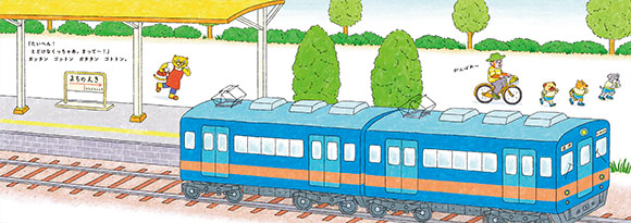 「お弁当忘れてるよ!」とママは走りながら叫びますが、「ちいた」は全然気が付きません。頑張るママのスーパー追いかけっこ絵本。