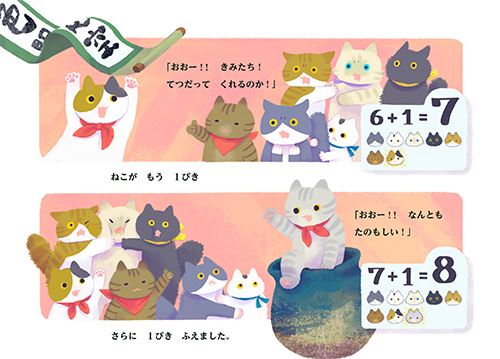 数字や量(大きさ・重さ・長さなど)に結び付く言葉を、私は『さんすう言葉』と呼んでいます。『何匹になるかな?』『どっちが大きいかな?』など、“さんすう言葉"を補いながら読み聞かせてあげるといいでしょう。