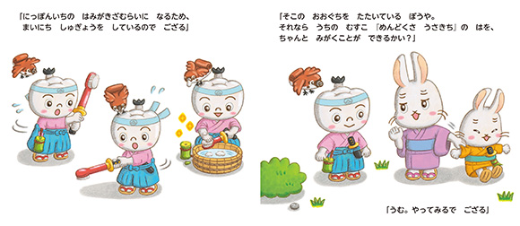 『もものすけ』は、日本一の「はみがきざむらい」になるため修行中。