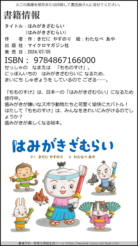 『もものすけ』は、日本一の「はみがきざむらい」になるため修行中。歯みがきが嫌いなズボラ動物たちと可愛く愉快に大バトル!