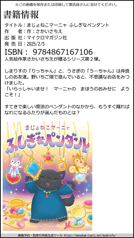 人気絵本作家さかいさちえが贈るシリーズ第2弾。離ればなれになってしまうお友達。ふたりが選んだ素敵な魔法のペンダントとは?