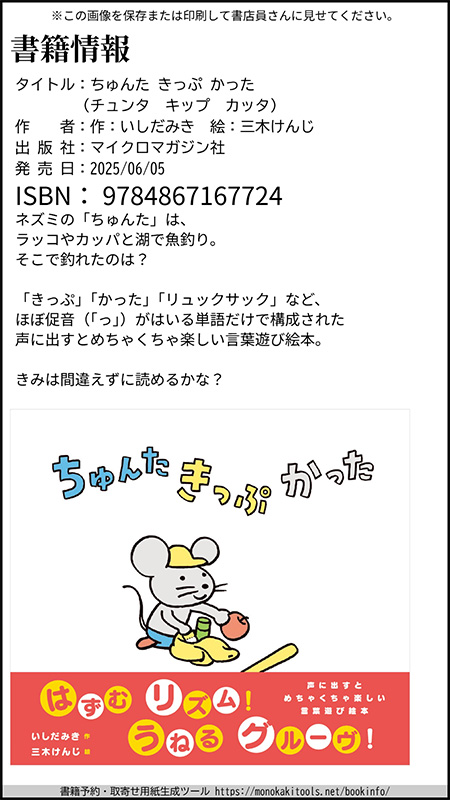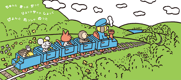 「きっぷ」「かった」「リュックサック」「れっしゃ」など、9割以上小さい「っ」が入る単語のみで構成された、声に出すとめちゃくちゃ楽しい言葉遊び絵本。