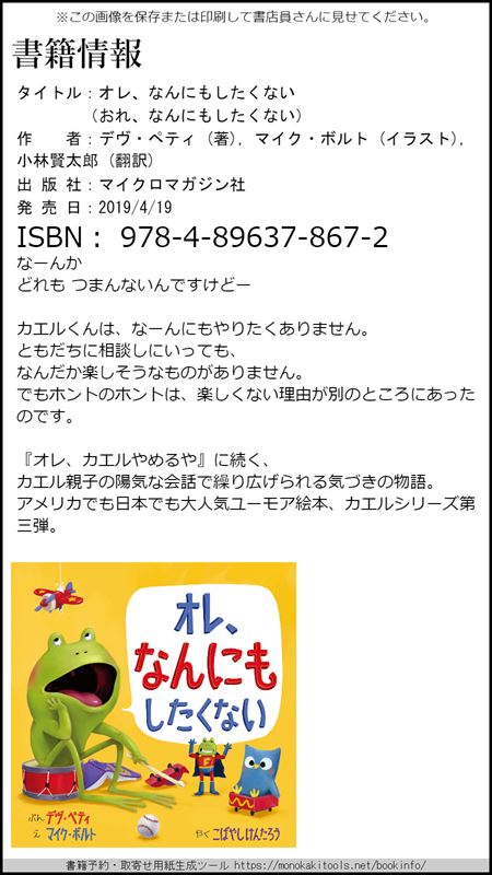 アメリカでも日本でも大人気ユーモア絵本、カエルシリーズ第三弾。