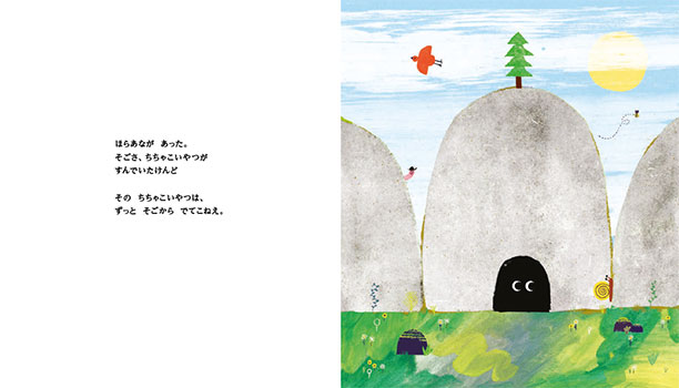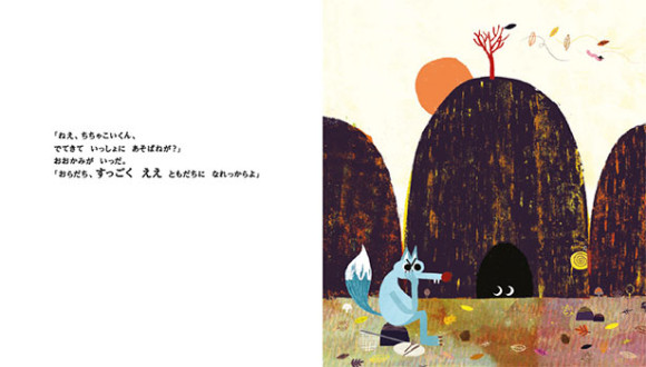 おなかをすかせたおおかみが、ほら穴のなかの“ちちゃこい"いきものをおびき出そうと、あの手この手でがんばります。