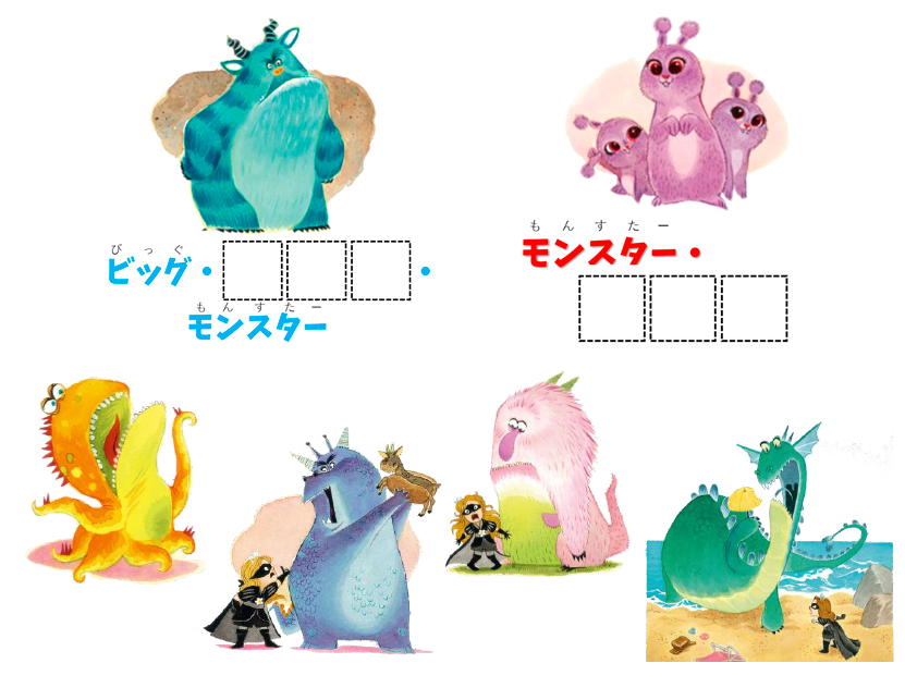 - モンスターをさがして、なまえをしらべよう!なまえがわかったら、解答用紙にかいてね。