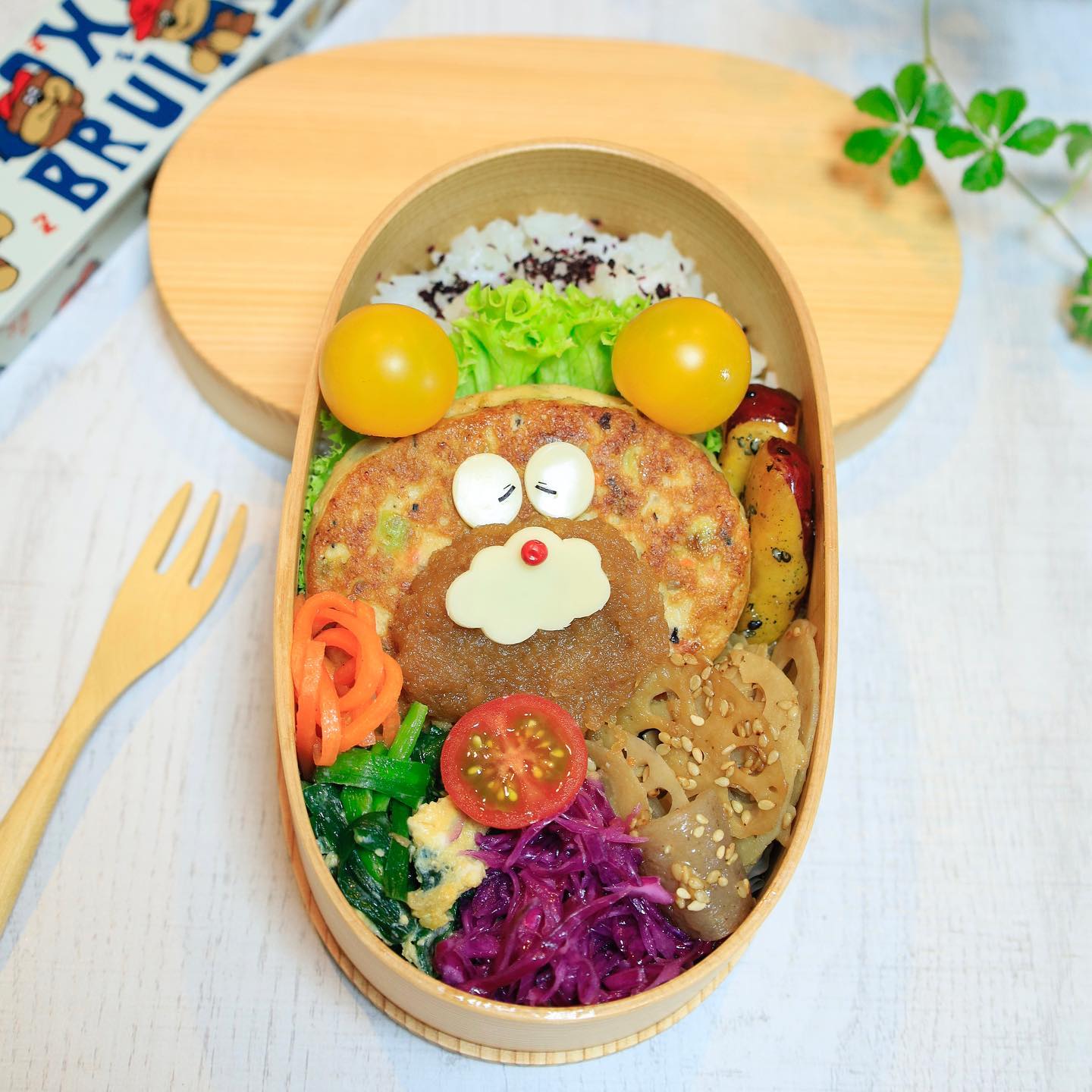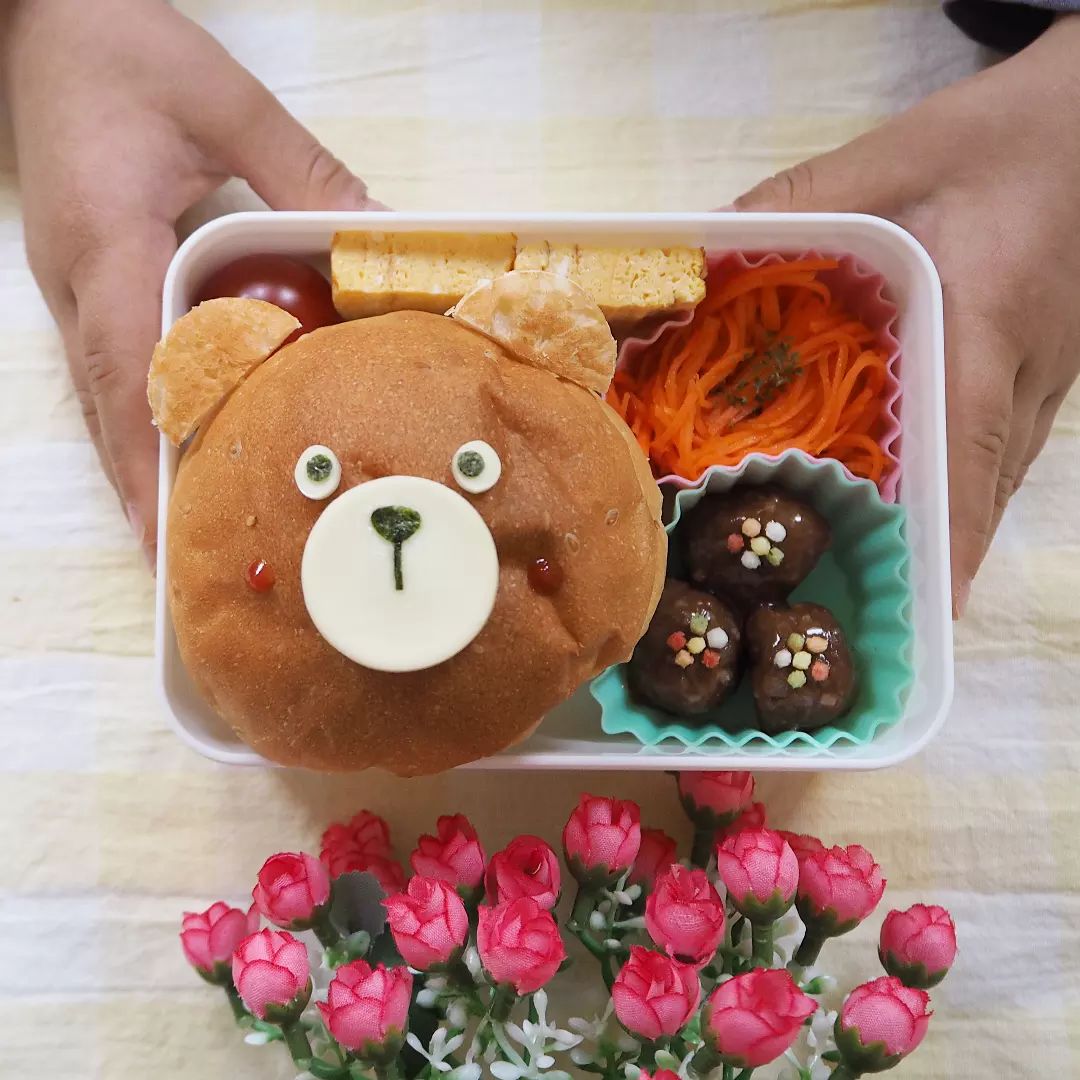 クマさんののほほんとしたお顔にホッコリしました。 色とりどりで栄養たっぷりなお弁当ですね!