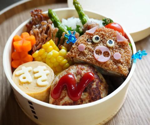 お弁当箱の蓋を開けたら、くりくりお目目のブタさんがこっちを見ていて、素敵な文字まで入っているなんて! 午後も楽しい気持ちでがんばれそうですね。