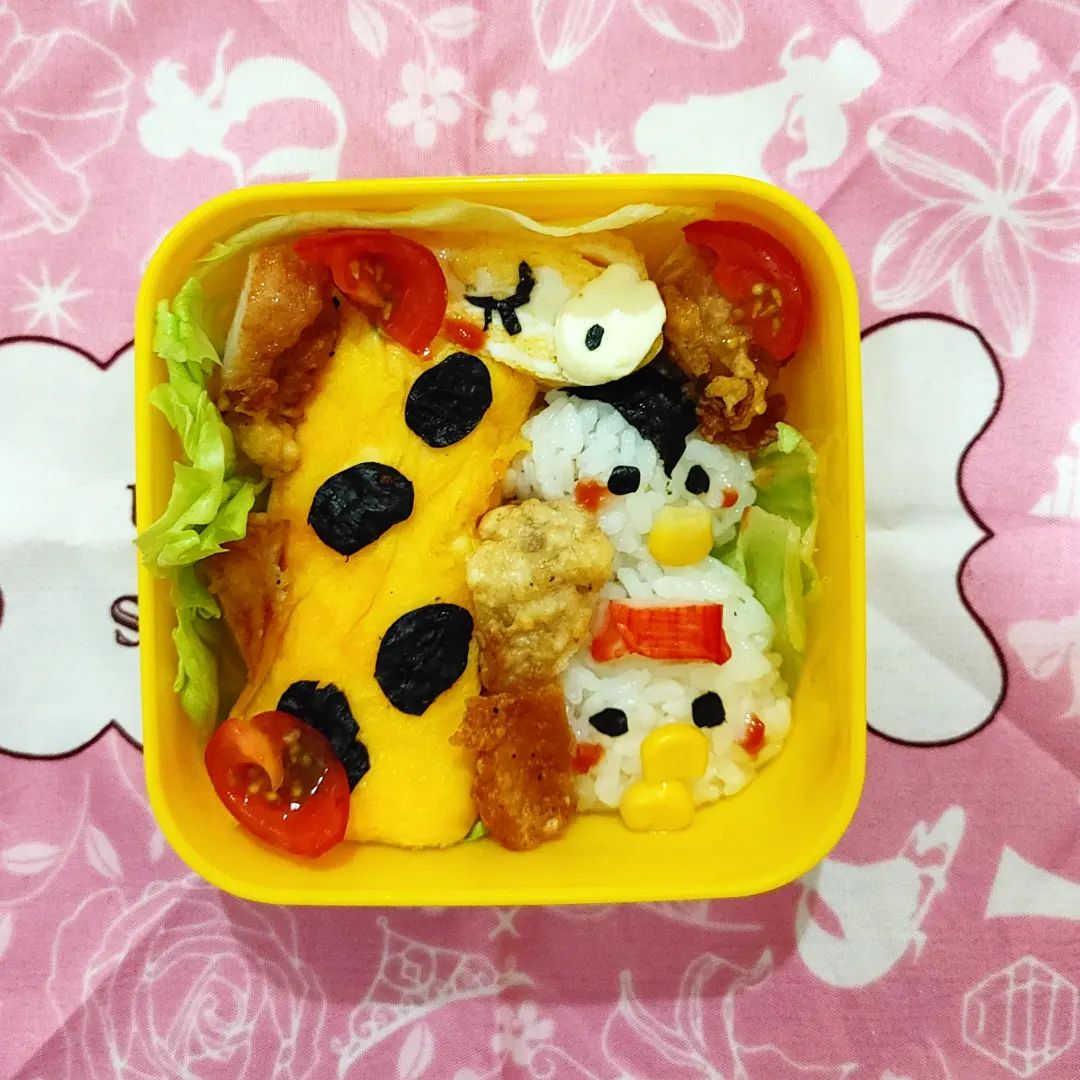 卵焼きを工夫すると、こんなに可愛いキリンさんが生まれるのですね。 皆で仲良さそうにくっついているキリンさんとペンギンさんとニワトリさん。思わず優しい気持ちになりました!